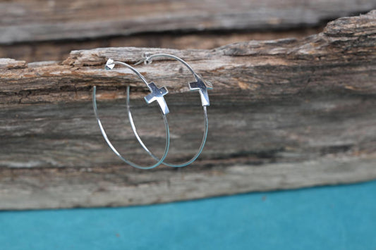SS Large Cross Hoop Earrings