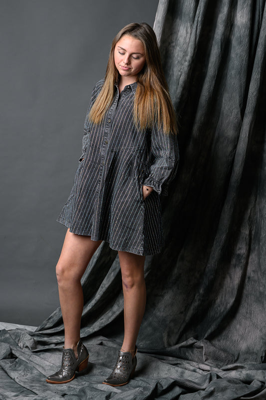 Rhinestone Stripe Denim Dress