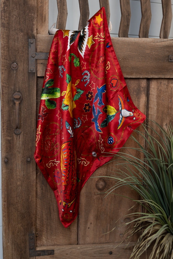 Tips: Just tie it on! This scarf can pull any detail from a shirt or jacket and make the look! If you are looking to add some vintage flair to your outfit, this is your scarf.