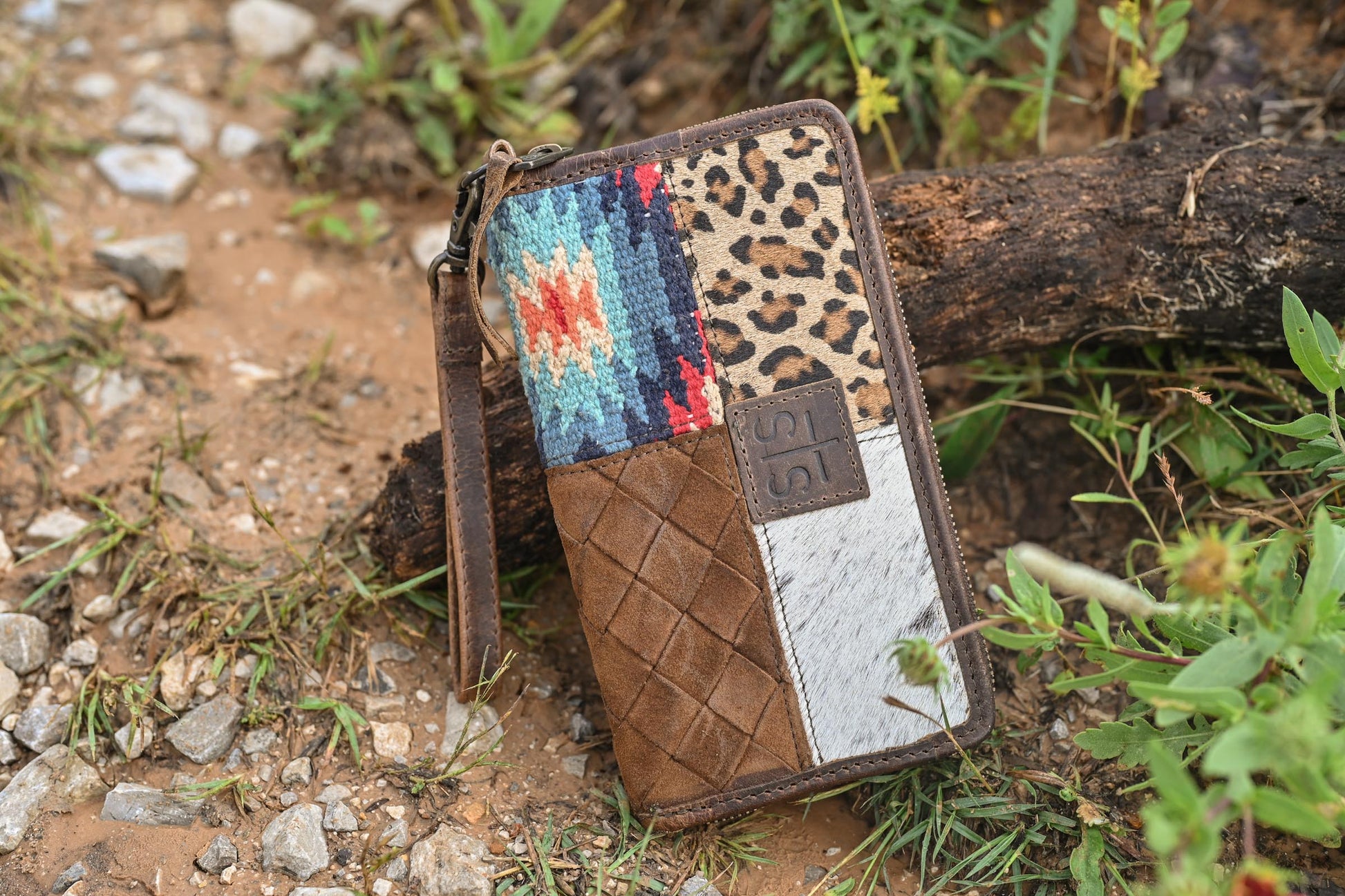 - Hair-on-hide, handwoven serape fabric and full grain leather exterior