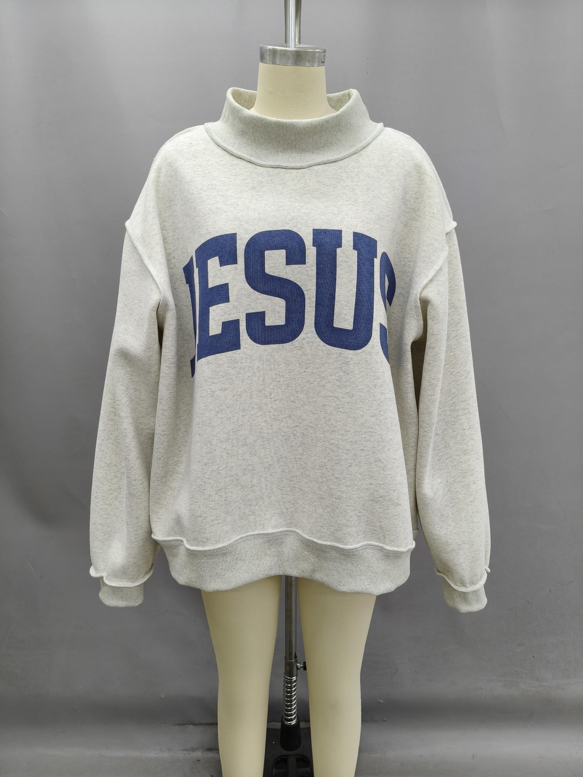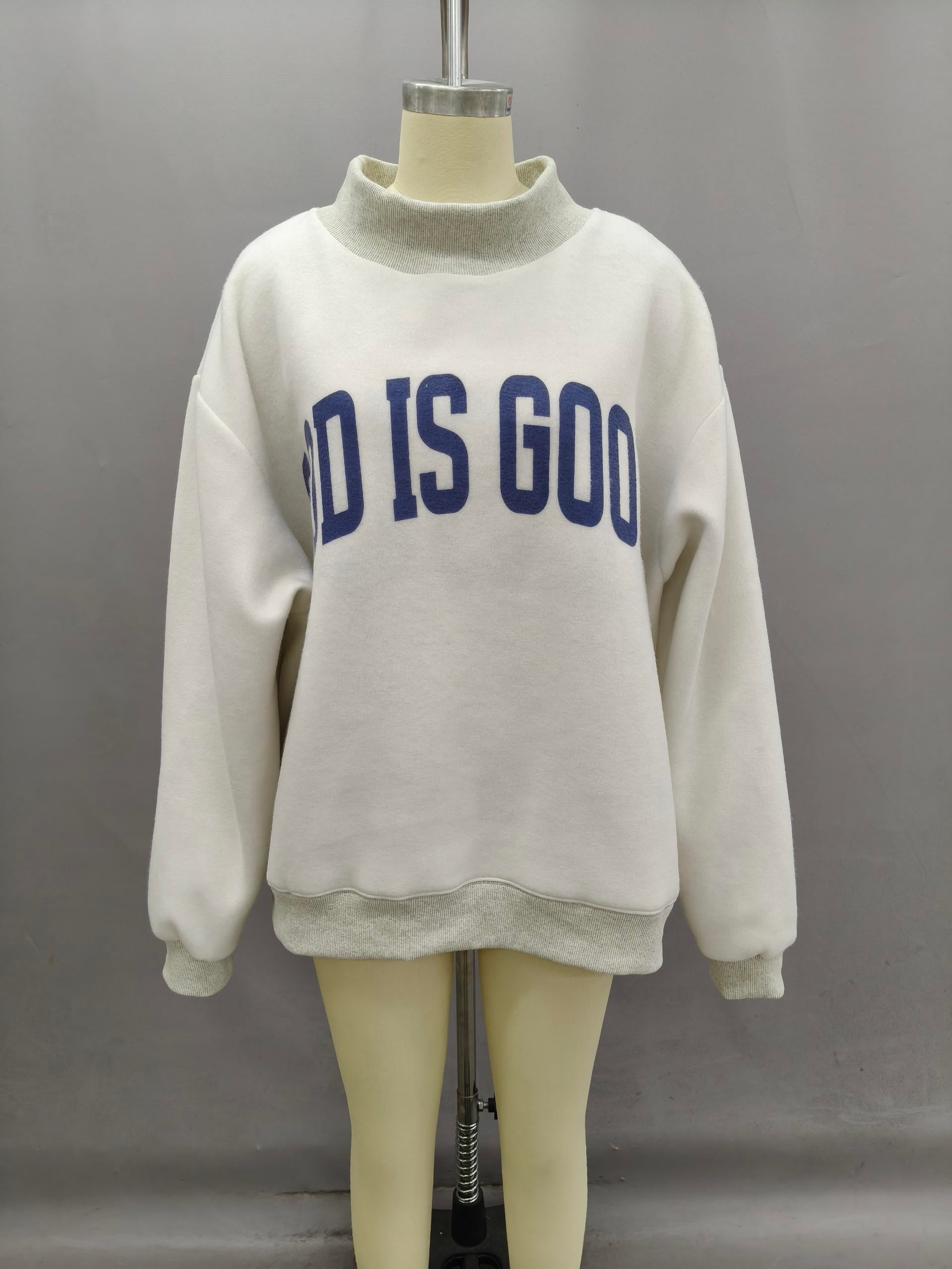 'JESUS & GOD IS GOOD' Print Reversible Mock Neck Sweatshirt