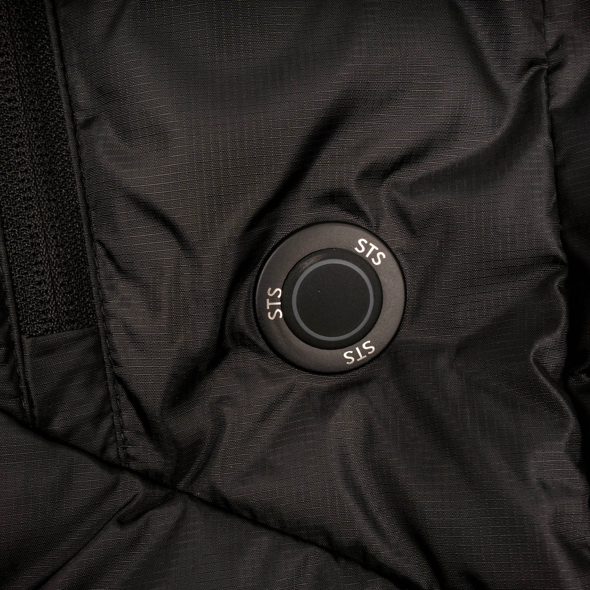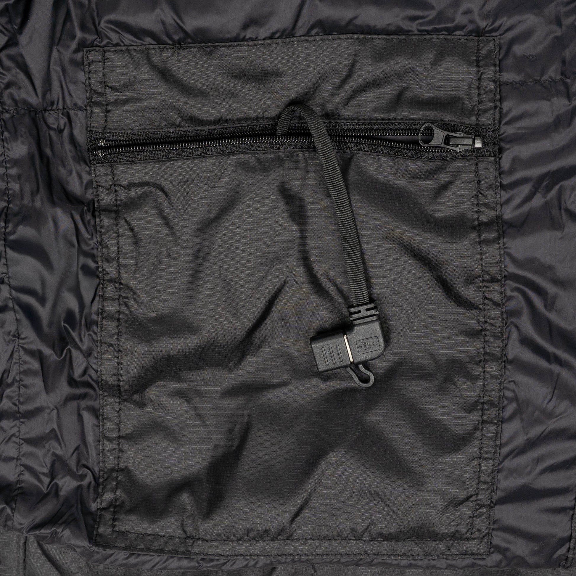 - Insert plug from inner pocket into power bank. Hold button until red light turns on (generates heat within 1 minute).