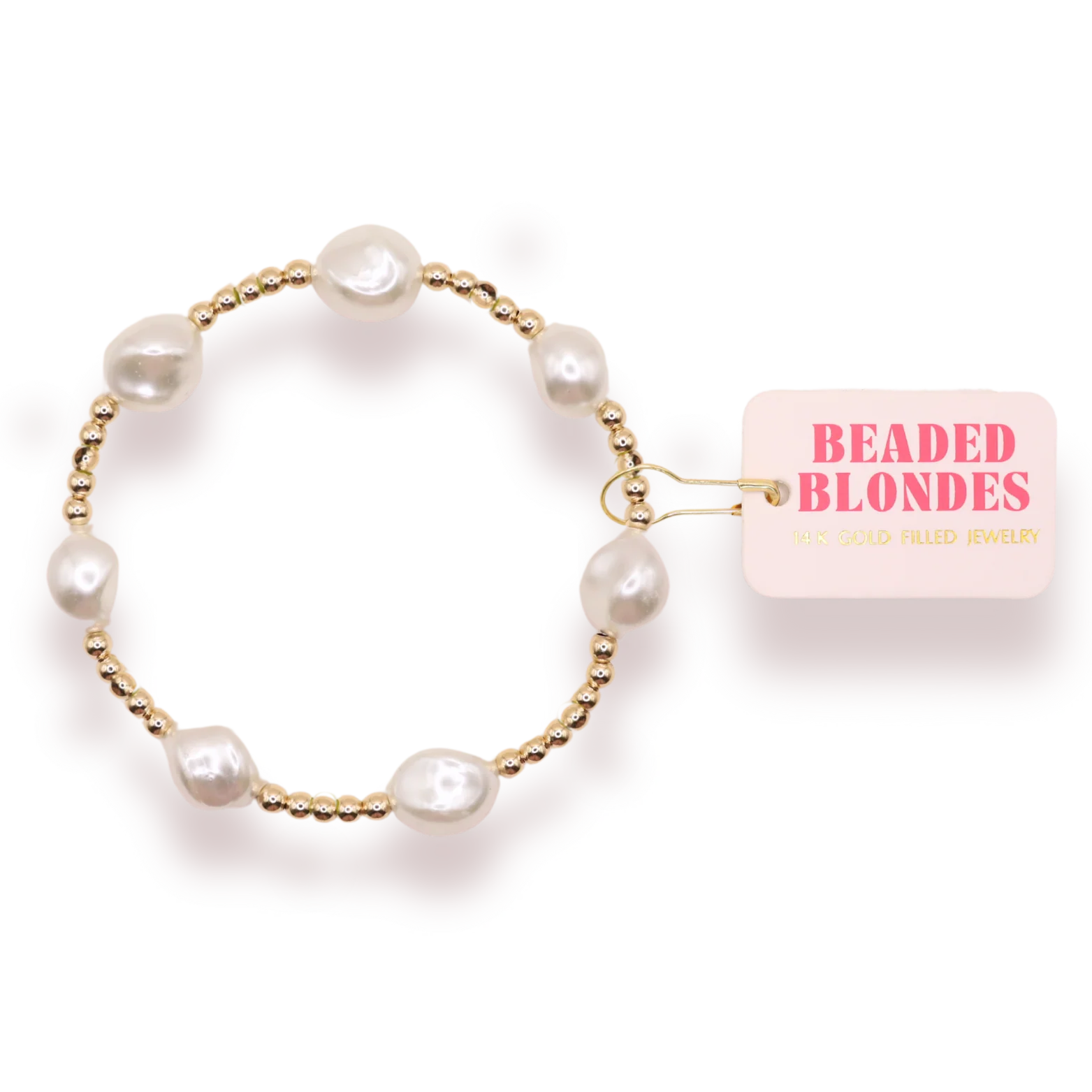 The Sadie bracelet is a mix of large synthetic pearls and 3mm gold filled beads.